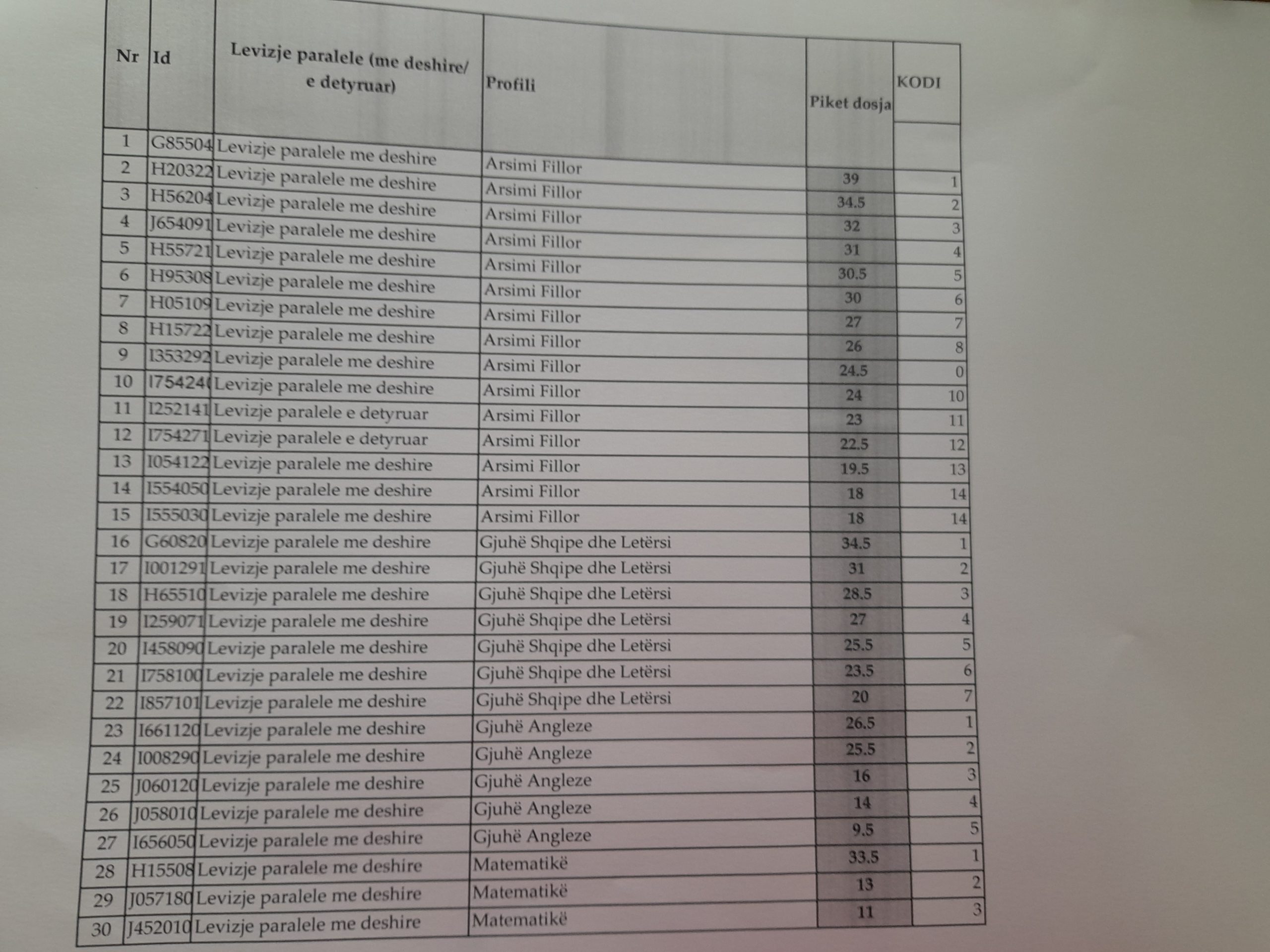 Në zbatim të udhezimit nr. 12 datë 10.06.2021 , kreu 7 ,pika 8, ZVAP Devoll shpall renditjen e vleresimit të dosjeve të kandidatëve për levizje paralele për cdo profil në rend zbrites. Vendet vakante provizore / definitive që IA që ZVA Devoll ka nën juridiksion disponojnë.